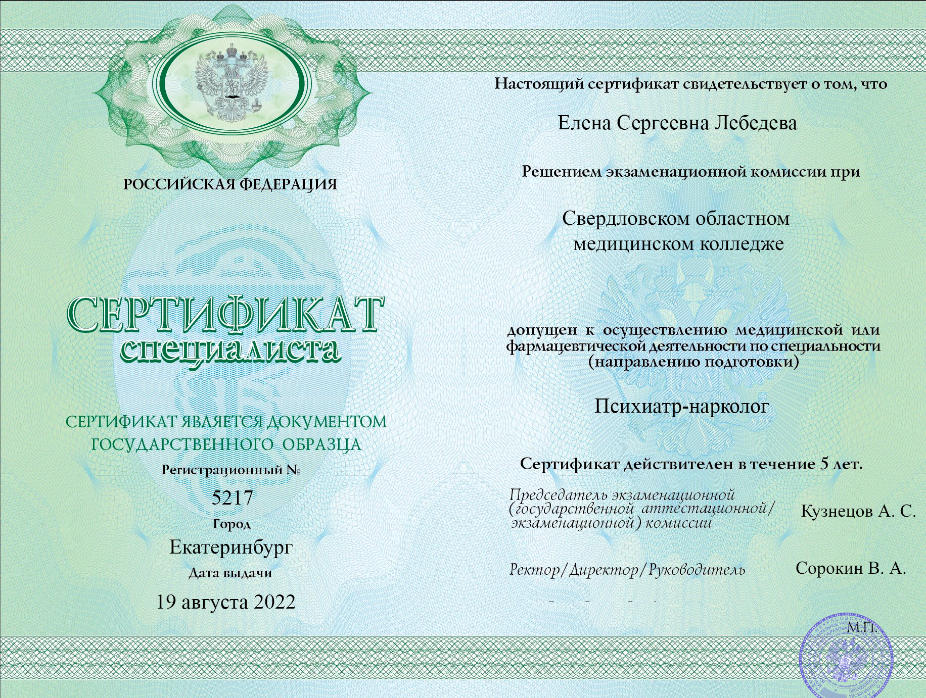 Елена Сергеевна Лебедева врач нарколог клиники доктора Стукаловой в Камень-Рыболове